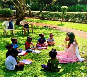 Taking forward this experience and belief, Wara foundation was born. We began our work in the year 2018 across slum areas of Mumbai distributing sanitary pads and health kits made by women from various self help groups and NGOs. We then started our work for children from low-income communities via art programs like Kathakathan and Dora.
